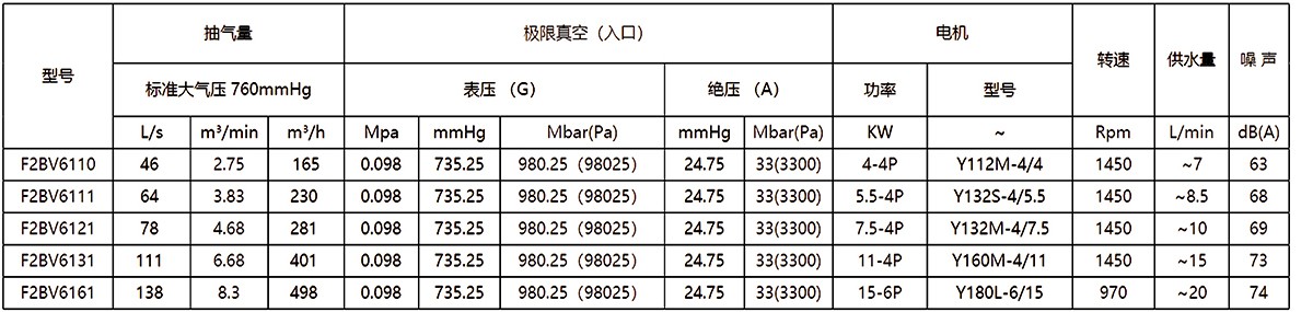 2.上列性能基于進氣溫度20℃,進水溫度15℃,排氣壓力1013hpa的條件,被吸入氣體為飽和空氣。(飽和空氣是指在對應吸入狀態(tài)下,其相對濕度為100%的濕空氣。)3.抽氣速率、軸功率性能允差10%。