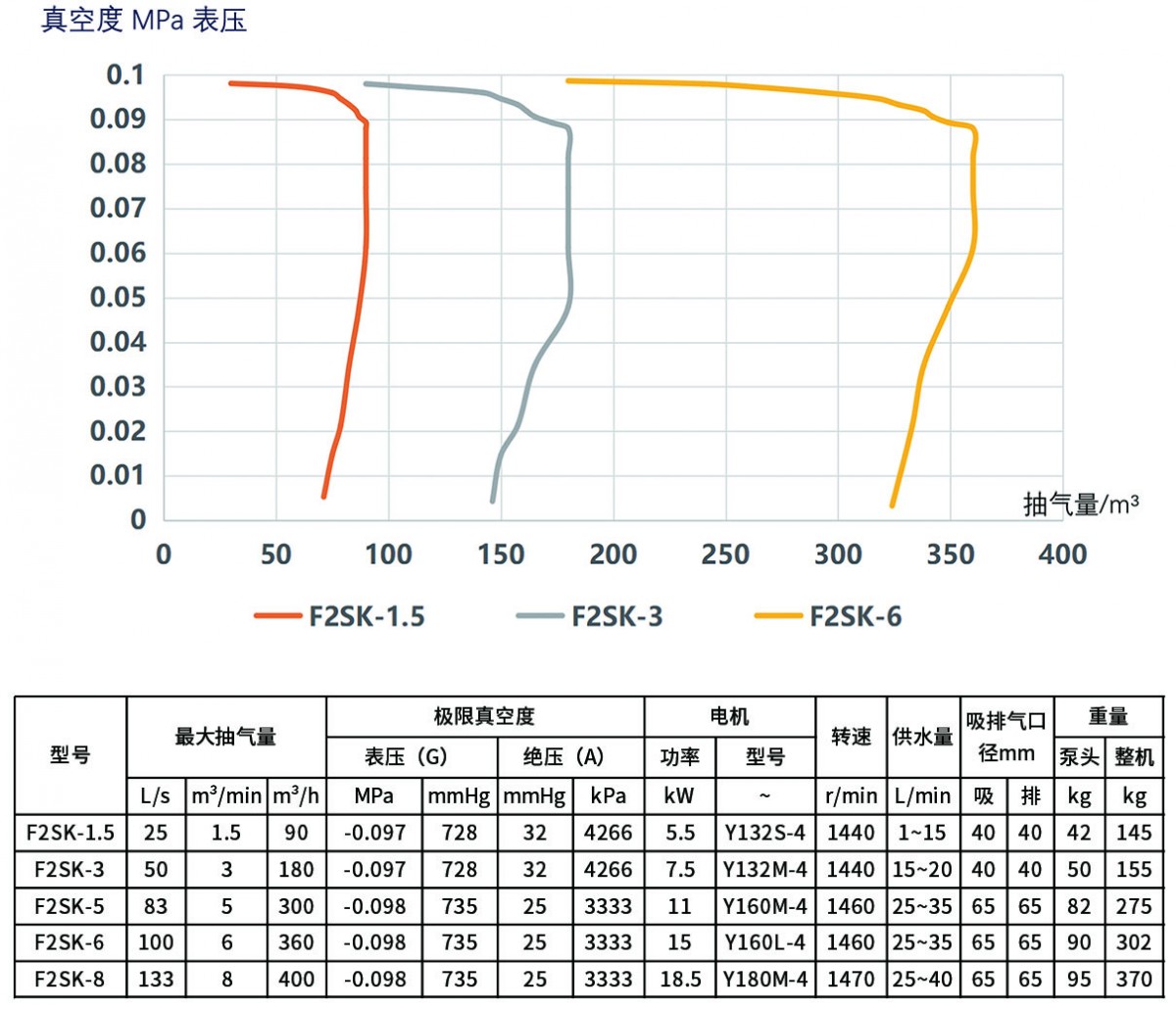 3.抽氣速率、軸功率性能允差10%。